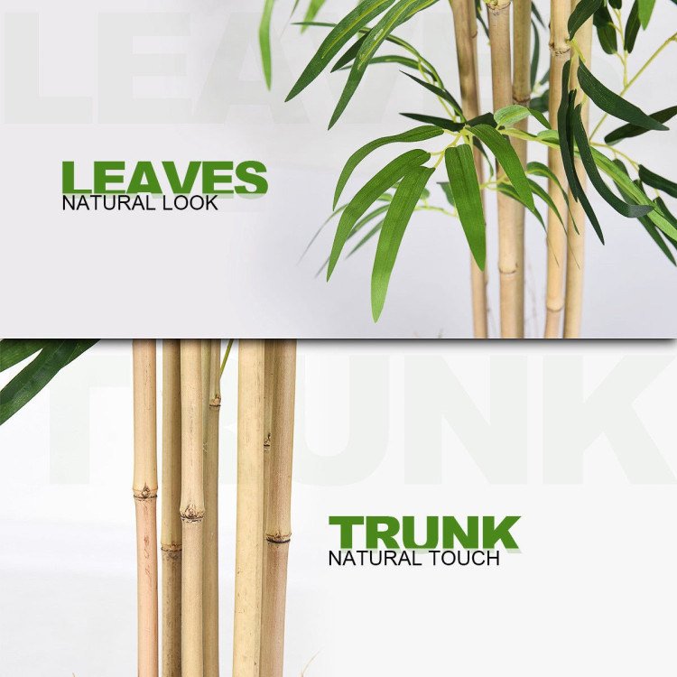 1.Premium Quality Material:This 5 ft. tall artificial bamboo tree is made out of durable and quality material that will last for a lifetime. The pot is lightweight plastic and the surface is covered with simulated moss, with the polyester leaves, the artificial bamboo tree is a great decor for every time of the year,displaying in hotel or office lobbies, foyers, living room and reception or waiting rooms.