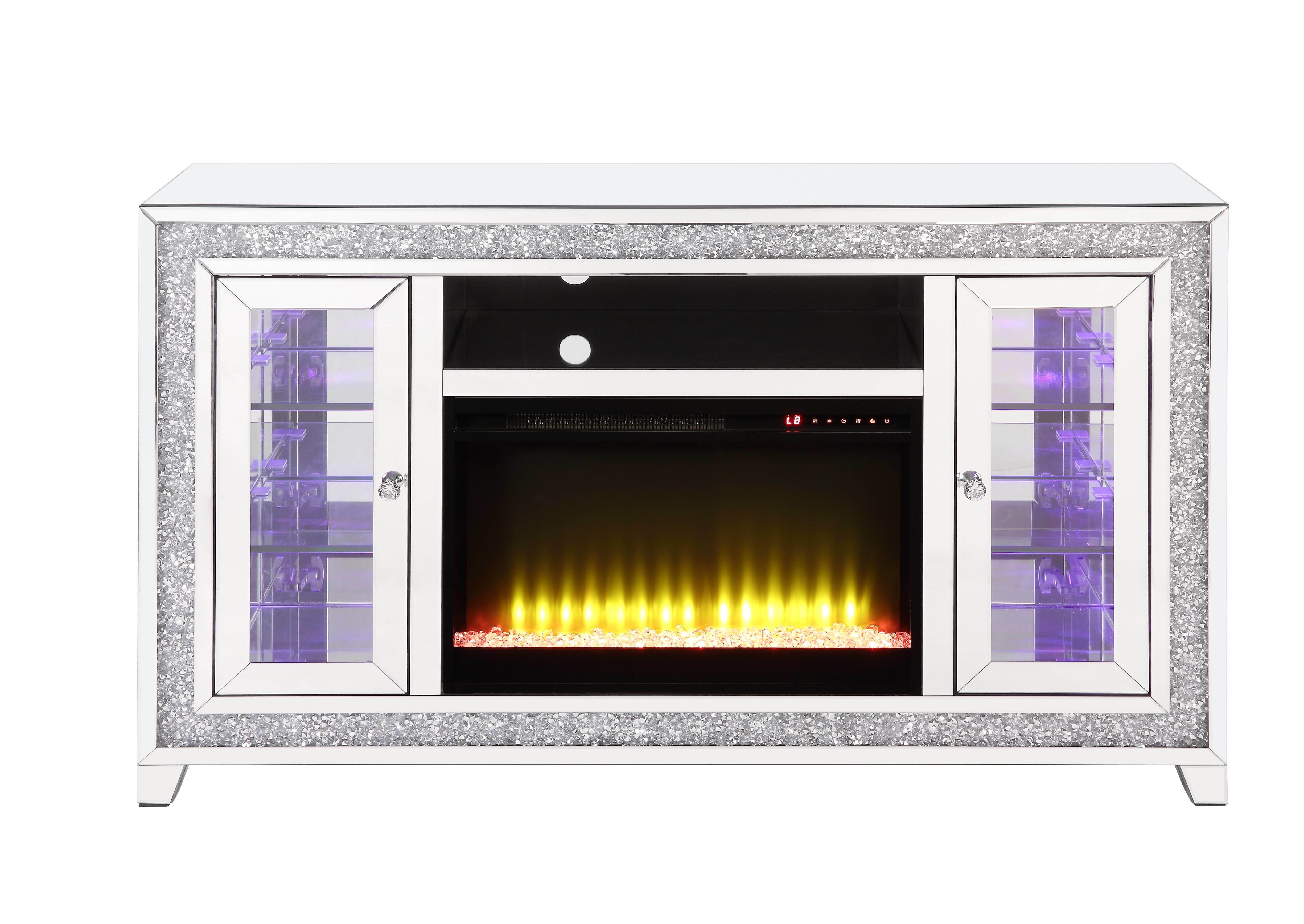 ACME Noralie TV STAND W/FIREPLACE & LED Mirrored & Faux Diamonds LV00316