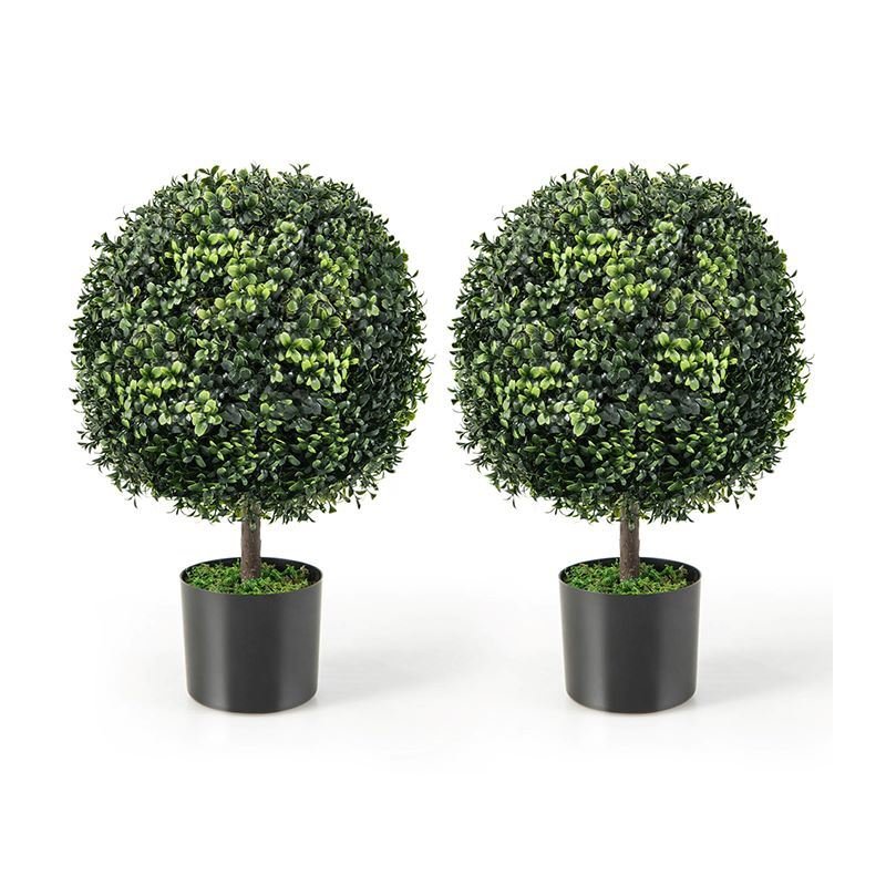 5.The 2-pack artificial topiary trees come with luxuriant, fade-resistant leaves and imitation grass.