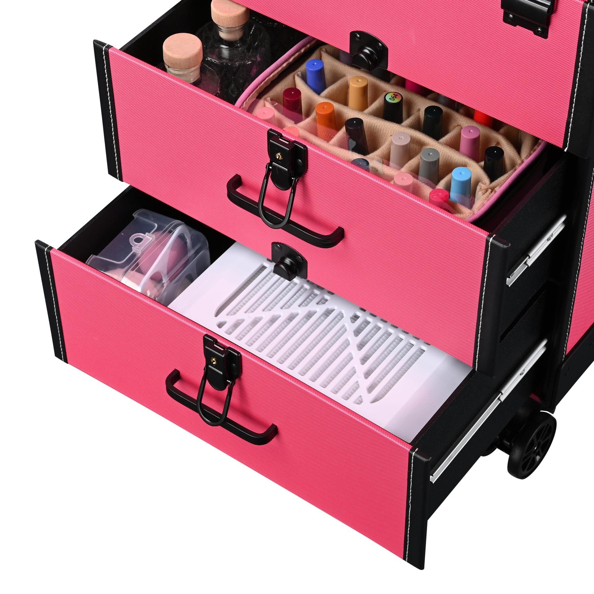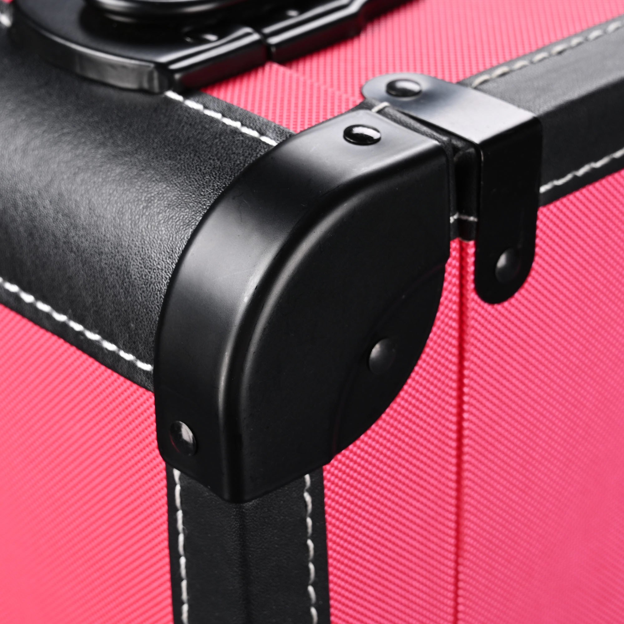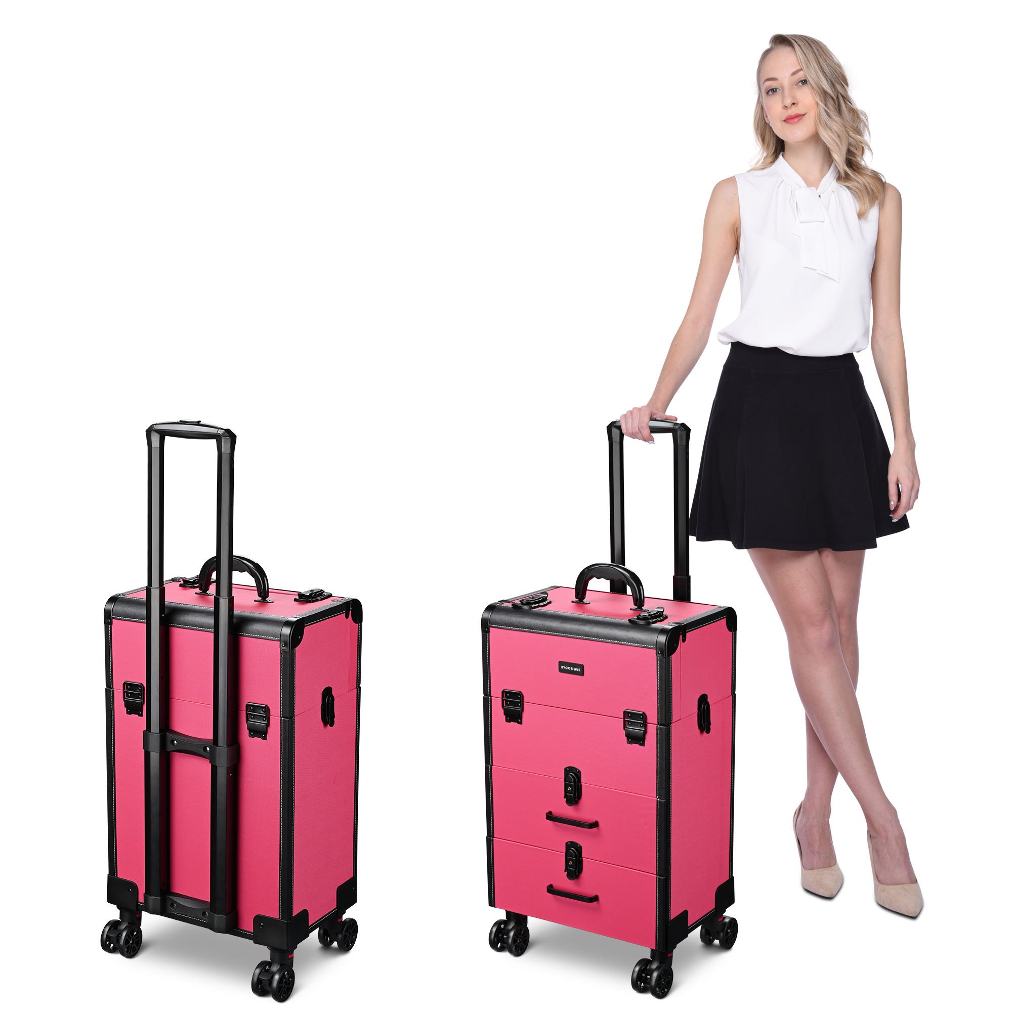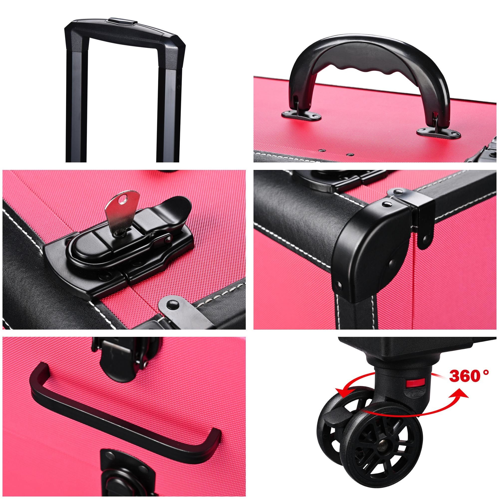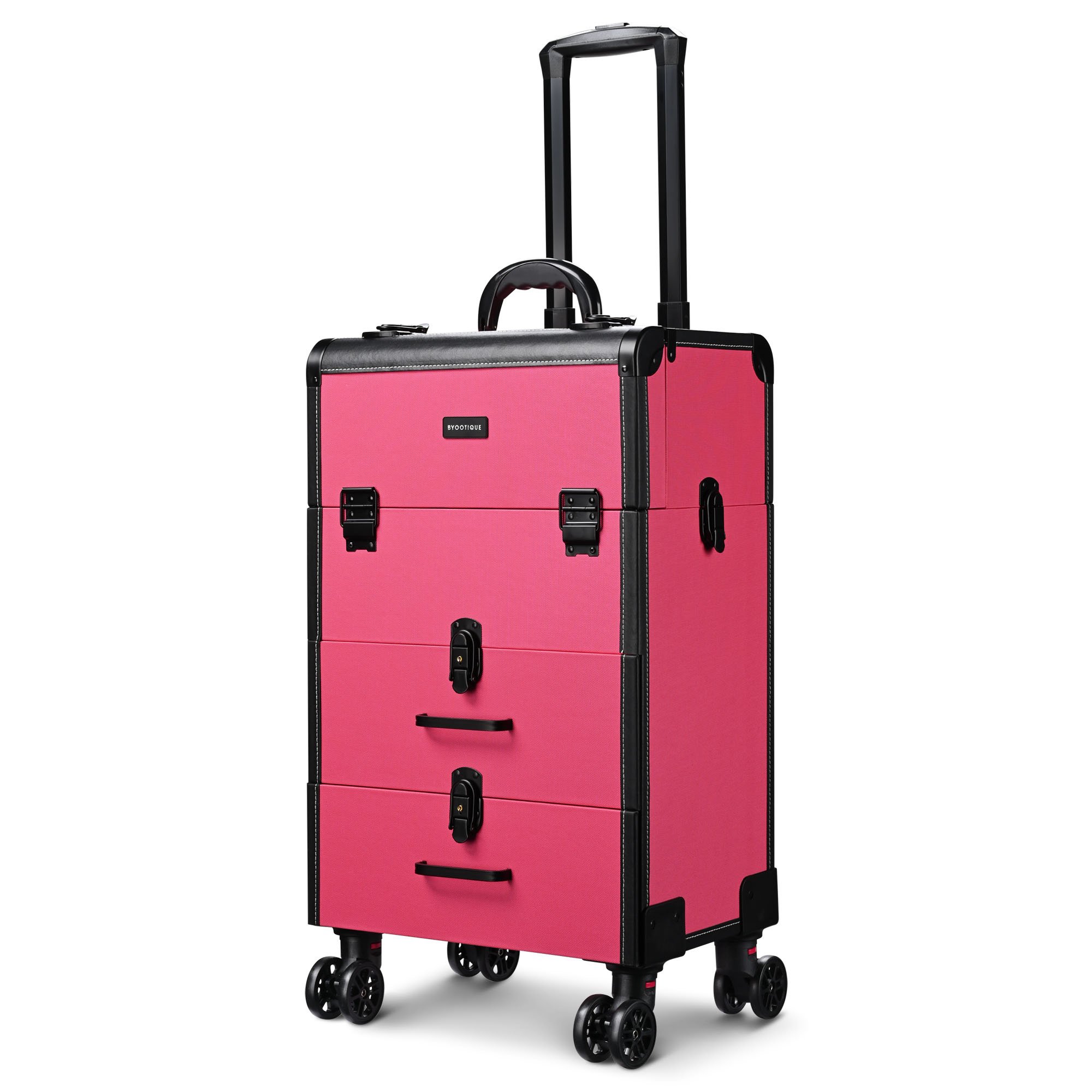 - Eye-catching Design - 15"x12"x26" Byootique Stylish Rolling Makeup Train Case comes in bright pink with matte finish and black edges for delivering an eye-catching look, enabling you to show your unique fashion taste wherever you go; Its compact size allows for easy storing and portability, ideal for professional makeup artists, manicurists, freelance beauticians, beauty bloggers, etc.