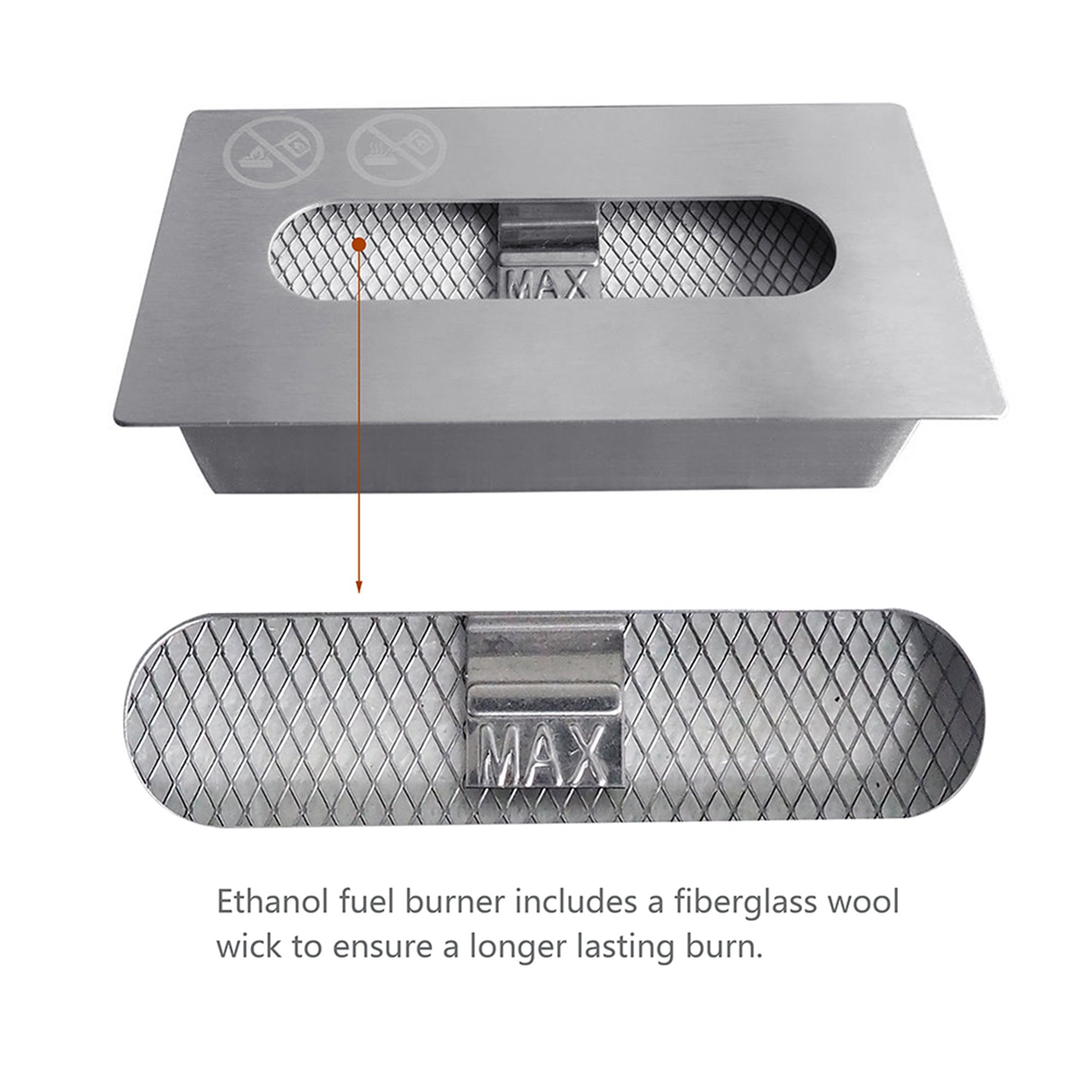 2.Fiberglass wool wick prevent fuel spillage; ensures long-lasting use. Open real flame burns completely ventless; soot free; ash free; easily light and extinguish